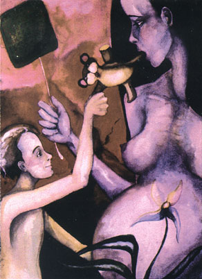 This painting, entitled "A Magnet to his Mother's Love", adorned the back